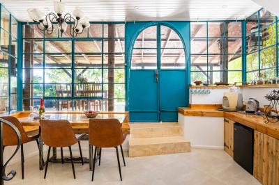 בתוך הבית תמצאו מטבח מאובזר, פינת אוכל נפרדת וסלון מרווח, המבטיח כל נוחות לשהייה נוחה. כל החדרים ממוזגים לנוחיותכם המרבית. הסלון כולל טלוויזיה גדולה, ספה נפתחת ומזרן גדול במיוחד לסידורי שינה נוספים במידת הצורך.